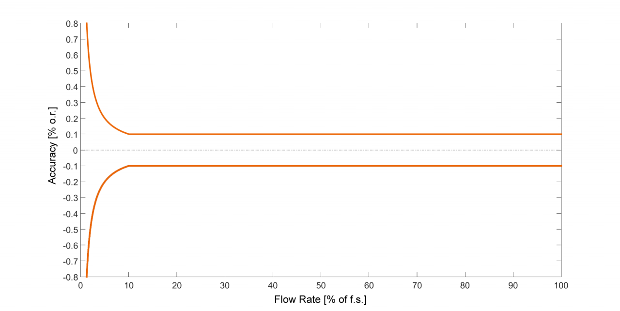 | 基本精度(質量流量)³ | 流量范圍的±0.3 % (可選: *高到 ±0.1 %) |